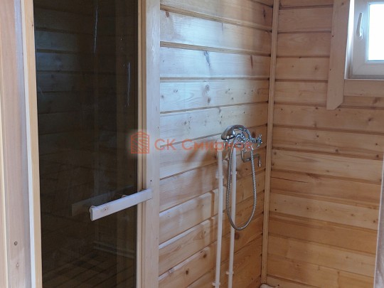 В помывочной устанавливается бойлер, бак, насос, смеситель, одним словом полный комплект чтобы принимать душ даже без центрального водоснабжения.