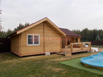 Такая одноэтажная баня 8х8 может быть построена из бруса. Ориентировочный срок строительства 30 дней.