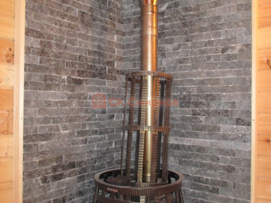 Если мы устанавливаем печь то поверьте, под печью, бок у стены, проход через стену будет сделан из кирпича, красиво, аккуратно, безопасно и с некоторых пор мы устанавливаем кирпич гладкий и красивый с двух сторон, раньше 99% кирпича имели одну сторону красивую, это сторона выходила в комнату отдыха, а в парной было ужасно. Но мы нашли свой кирпич и теперь выглядит это достойно с двух сторон. Еще видео что мы встречали в своей практике. Но по факту все же сделано, только как.