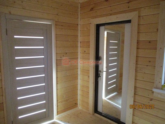 Обязательный элемент брусового дома или бани, это брусок в пиленный в брус в проем двери или окна не менее 50х50мм. Обязательно должен оставаться зазор сверху на усадку и этот брусок не должен быть жёстко закреплен в проеме. В некоторых случаях внутри помещения ставим металлические ройки, уточняйте. Посмотрите отрывок видео как могут повести себя стены