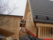 На террасе при условии что она есть делаем перила из строганной доски со всех сторон, столбы террасные также строганные, а не обрезки профилированного бруса с шипом и пазом. Домкратики на столбах для дальнейшей регулировки. Балясины будут сделаны аккуратно. Обратите внимание что в дешёвых случаях это может быть и будет просто вагонка прибирая к неотесанной доске снаружи и столбы будут не квадратные а просто профилированный брус как на видео.