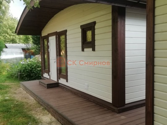 Для строительства красивой бани 3.5х5.3 метров СК Смирнов разработал проект №289 с обустроенной парной и комнатой отдыха. По планировке общая площадь составляет 18.5 квадратных метров. Можно выделить несколько особенностей проекта: терраса, санузел, панорамные окна. Мы строим бани под ключ с полной отделкой снаружи и внутри.