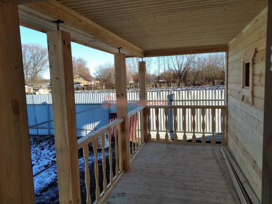 На террасе при условии что она есть делаем перила из строганной доски со всех сторон, столбы террасные также строганные, а не обрезки профилированного бруса с шипом и пазом. Домкратики на столбах для дальнейшей регулировки. Балясины будут сделаны аккуратно. Обратите внимание что в дешёвых случаях это может быть и будет просто вагонка прибирая к неотесанной доске снаружи и столбы будут не квадратные а просто профилированный брус как на видео.