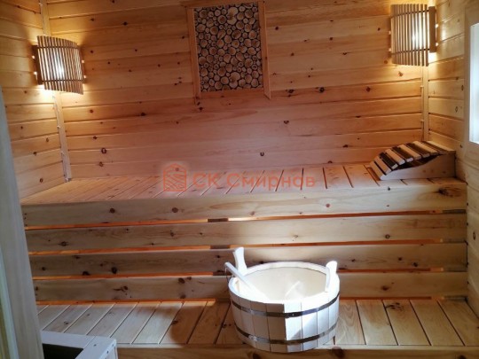 Размер 5,3 на 6 метров. Внутри 4 помещения: комната отдыха, парная, душ и санузел, где размещается душевая система. Ориентировочный срок строительства 10 дней.
