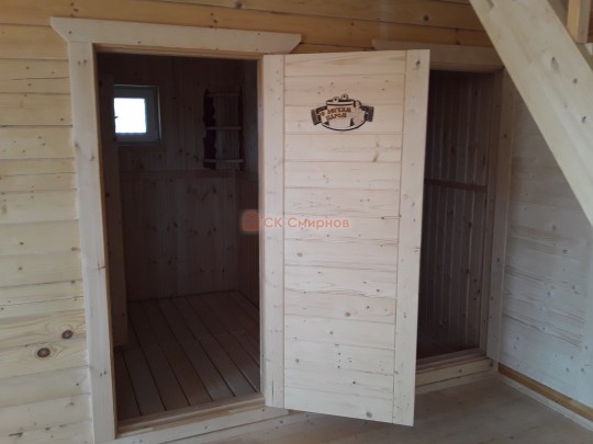 Для строительства современной бани 6х6 метров СК Смирнов разработал проект №38 с обустроенной парной и комнатой отдыха. По планировке общая площадь составляет 60 квадратных метров. Можно выделить несколько особенностей проекта: терраса, веранда, туалет, санузел. Мы строим бани под ключ с полной отделкой снаружи и внутри.