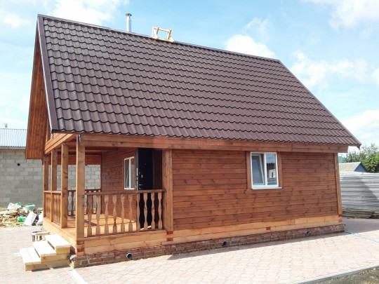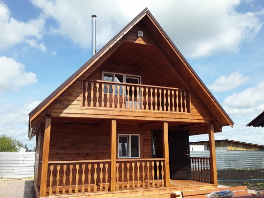 Такая с мансардой баня 6х6 может быть построена из бруса. Ориентировочный срок строительства 17 дней.
