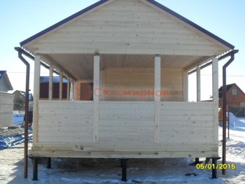 Мы не экономим на материале и делаем удлинённые свесы кровли, которые отлично защищают фасад от снега и дождя.