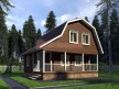 На фото представлен проект красивого дома №105 габаритами 7.5х7.5 метров и отличной планировкой общей площадью 85 квадратных метров. Можно выделить несколько особенностей проекта: терраса, веранда. Коттедж с мансардой, может использоваться как зимний, для постоянного проживания.