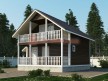 На фото представлен проект загородного дома №163 габаритами 7.5х8 метров и отличной планировкой общей площадью 98 квадратных метров. Можно выделить несколько особенностей проекта: терраса, балкон, веранда, туалет, ванная, санузел. Объект с мансардой, может использоваться как зимний, для постоянного проживания.