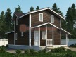 На фото представлен проект дачного дома №165 габаритами 7.5х10 метров и отличной планировкой общей площадью 115 квадратных метров. Можно выделить несколько особенностей проекта: терраса, веранда, туалет, ванная, санузел. Коттедж полутораэтажный, может использоваться как зимний, для постоянного проживания, коттедж.
