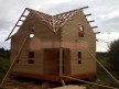 На фото представлен проект недорогого дома №203 габаритами 6х8 метров и отличной планировкой общей площадью 96 квадратных метров. Сруб полутораэтажный, может использоваться как зимний, для постоянного проживания.