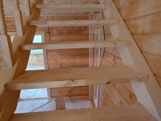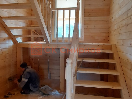 Устанавливаем вполне достойный вариант лестницы, клееные ступени, перила и балясины точеные, столбы и направляющие из строганного бруса. Посмотрите видео на что можно наткнуться не разбираясь в вопросах застройщика.