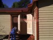 Главная проблема брусовых домов — усадка, после которой в срубе возникают щели в палец толщиной. Так случается, когда строят из дешёвого сырого бруса, плотно сажая венцы на гвозди (деревянные или металлические — без разницы). Мы же тратим время на сборку со сверлением. То есть сажаем брусья на металлические гвозди и в верхнем венце высверливаем отверстие под каждую шляпку. Поэтому во время усадки бруски не зависают на гвоздях, деформируя сруб, а свободно по ним скользят. Технология трудо- и времязатратная, но результат потрясающий — даже в срубах из сырого бруса практически нет щелей.