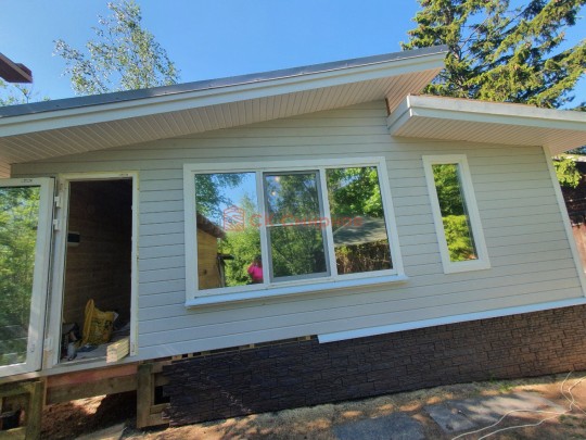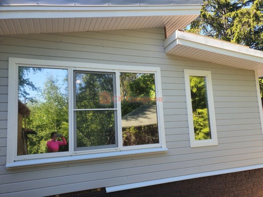 Окна мы устанавливаем настоящие деревянные стеклопакеты с фурнитурой как на пластиковых окнах, дерево используется клееное, повторюсь, не имитация деревянных стеклопакетов, а именно качественные окна.