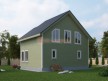 На фото представлен проект дачного дома №255 габаритами 7.5х8.5 метров и отличной планировкой общей площадью 124 квадратных метров. Можно выделить несколько особенностей проекта: эркер, туалет, ванная, санузел, панорамные окна. Коттедж полутораэтажный, может использоваться как зимний, для постоянного проживания, коттедж.