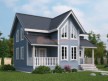 На фото представлен проект жилого каркасного коттеджа №259 габаритами 8х9 метров и отличной планировкой общей площадью 134 квадратных метров. Можно выделить несколько особенностей проекта: терраса, туалет, ванная, санузел, котельная, панорамные окна. Дом полутораэтажный (мансарда из бруса), может использоваться как зимний для постоянного проживания.