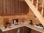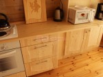 При заказе у нас строительства дачного дома или бани с жилым помещением можно дополнительно заказть установку кухонного гарнитура нашего производства по размерам вашего помещения. Количество шкафов, рабочих поверхностей и полок может быть любым — как вы захотите. Мы окажем помощь в проектировании гарнитура.